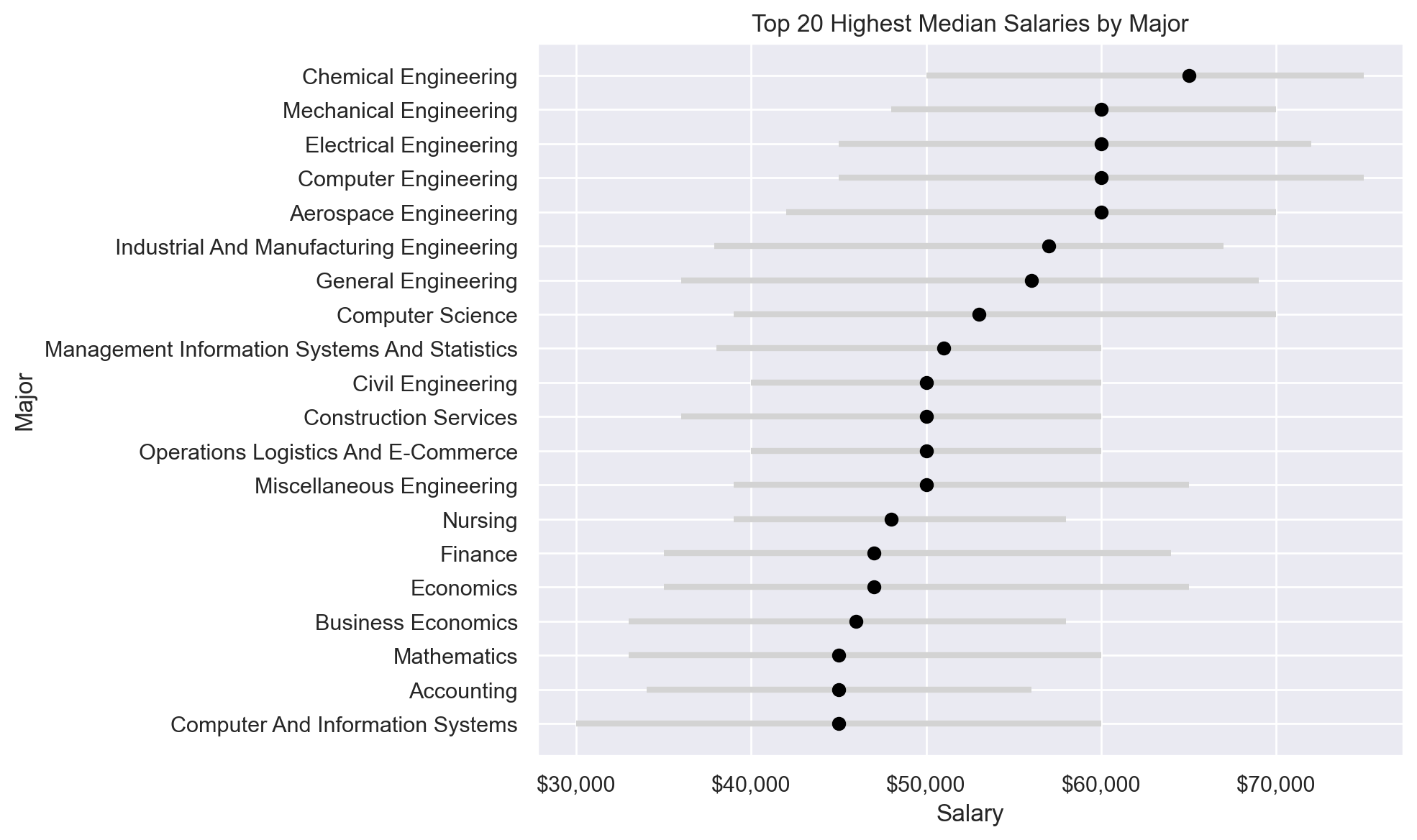 ax.set_title("Top " + str(n) + " Highest Median Salaries by Major")