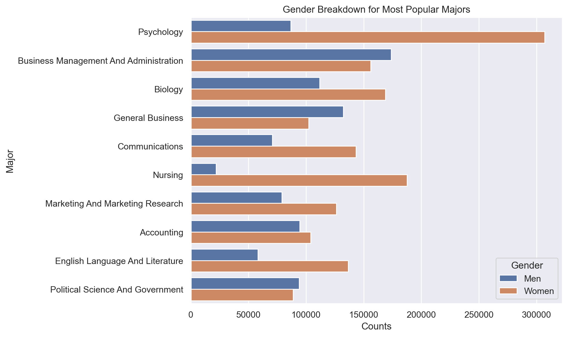 ax.set_title("Gender Breakdown for Most Popular Majors")