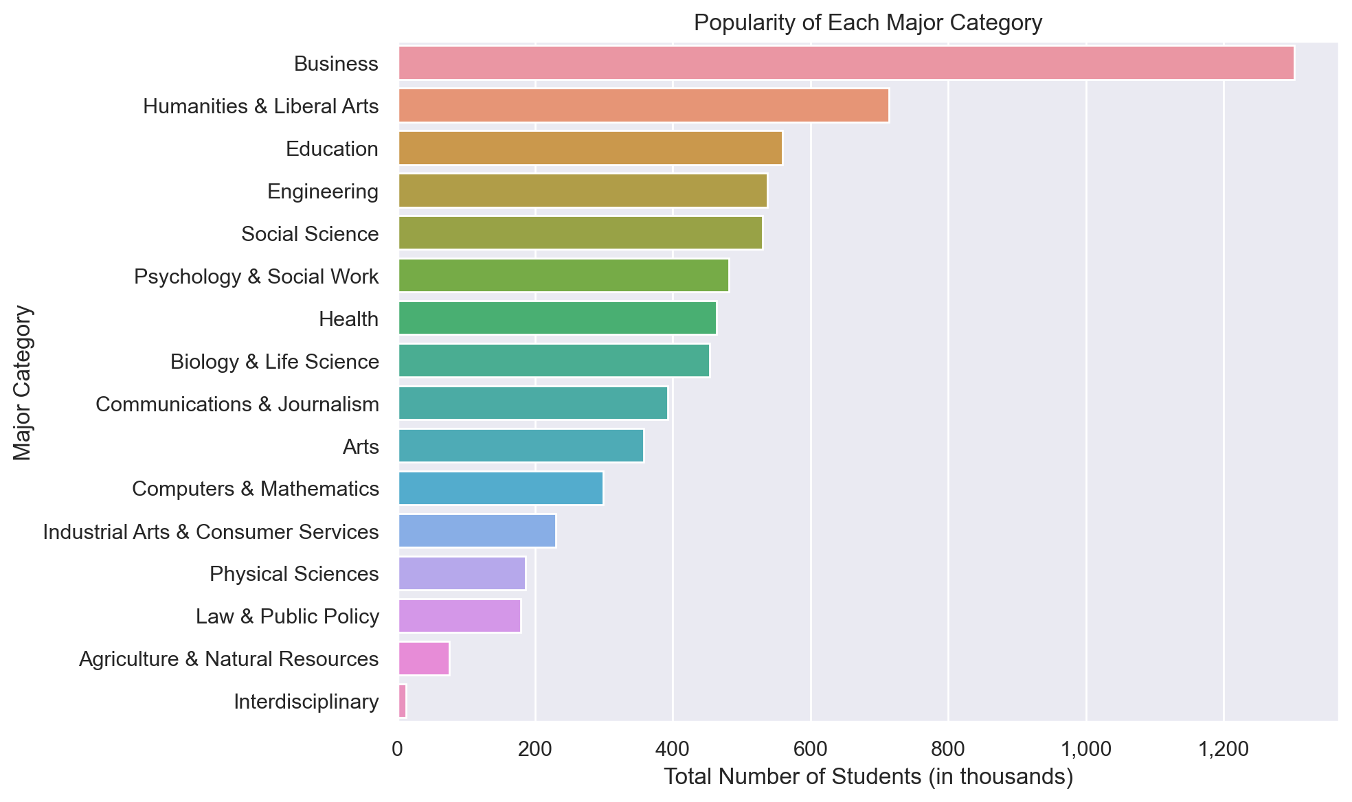 major_popularity["Total"] = major_popularity["Total"] / 1000 # Scaling down by 1000
